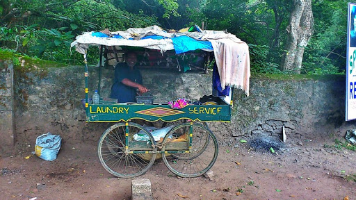 Ire le hizo esta foto del servicio itinerante de planchado, como el afilador de cuchillos antiguo. Usa una plancha de hierro con brasas carbón.