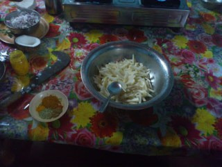 Preparamos infinidad de platos, y todos participamos en la comida. Incluso hicimos de comer para gente que venía a cenar (una familia hindú y un francés-vietnamita borracho y extremadamente pesado).