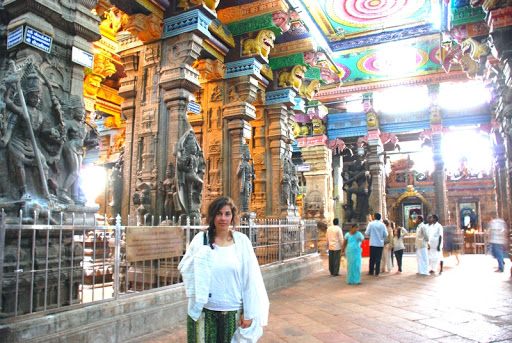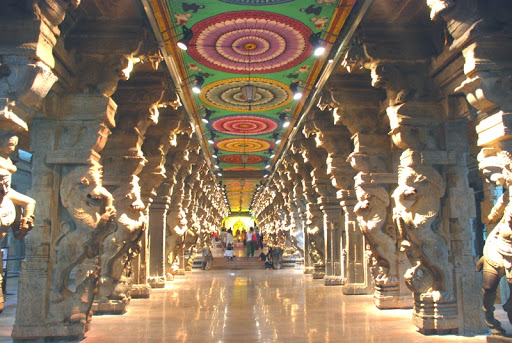 El templo de la ciudad está dedicado a Meenakshi Amma, la de los ojos de pez y tres pechos. La leyenda dice que uno de sus pecho se disolvería si encontraba esposo y esto pasó cuando conoció a Siva.