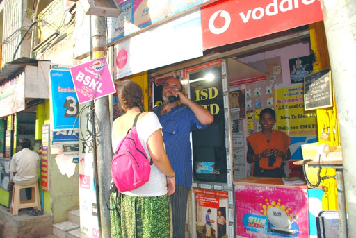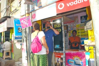 Llamada desde una cabina India. Te cobran en segundos y es muy barato en comparación con lo que te cobran por el móvil si llamas a España. Se oye clarito.