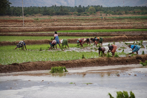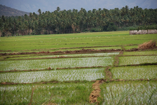 A ambos lados de la carretera que lleva a la reserva de Periyar se extienden inmensos campos de arroz y cocoteros.