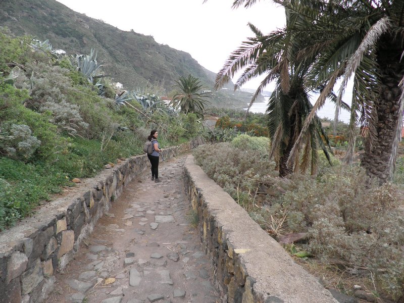 El camino continua por el borde del mar hasta desembocar en el pequeño y pintoresco Caserío de el Mayorazgo , rincón rodeado de varias casas viejas donde hay un lavadero antiguo que usaba el servicio de los señores de la Hacienda,. entraremos por ahí aunque la calle sigue empinada junto al muro delimitador de la Hacienda de los Castro hasta una pequeña entrada, entre grandes Palmeras ( Phoenix canariensis ) e Incienso ( Artemisia canariensis ).