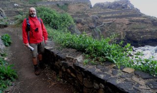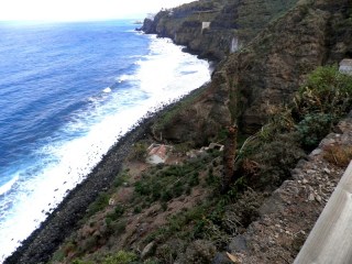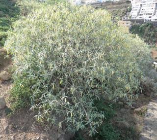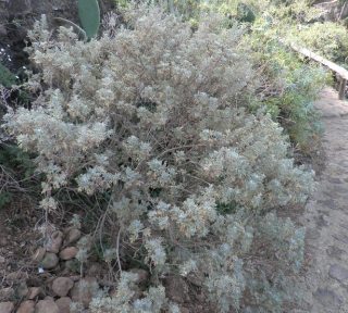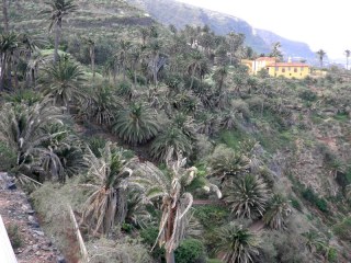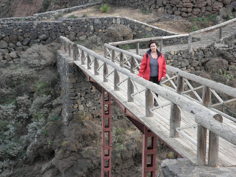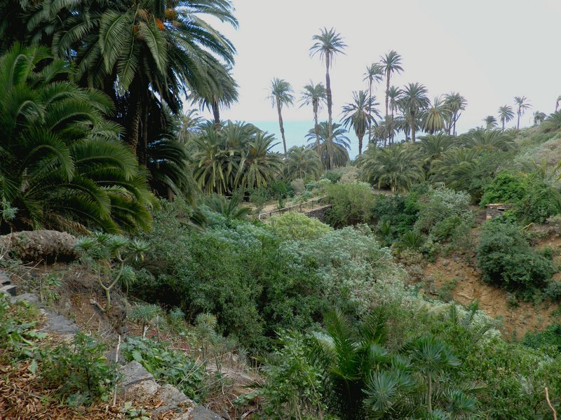 El camino sigue en fuerte descenso donde crecen Vinagreras ( Rumex lunaria ), Inciensos ( Artemisia canariensis ) y, Tabaibas ( Euphorbia mellifera ) hasta llegar a un puente que salva el Barranco de Godinez, ahora en leve subida ascendemos por la vertiente contraria del cauce de dicho barranco.