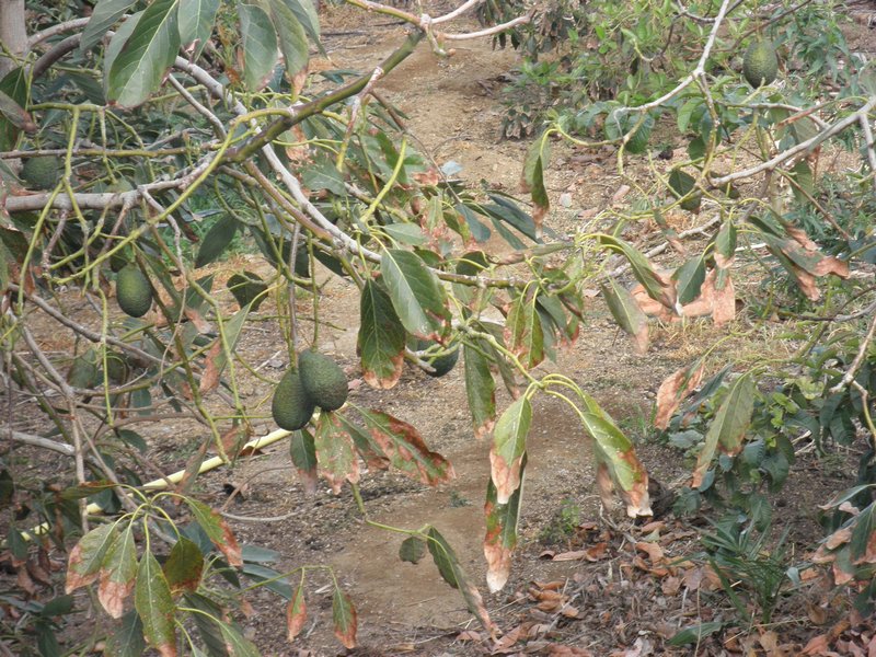 Siguiendo nuestro camino nos acercamos a un gran puente de hierro que salva el Barranco de Palo Blanco. El camino ahora asciende hasta un cruce de vías donde tomaremos a la derecha donde una valla de hierro impide el paso de vehículos, pasaremos ahora ante un gran muro de cemento y una zona vallada, desde la que podremos ver fincas de frutales.