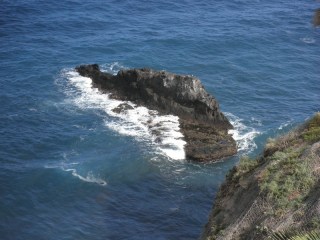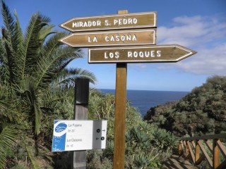 El sendero que está bien indicado con carteles informativos, algo deteriorados, nos indica cuál va a ser nuestra ruta. Desde lo alto se divisa la Playa del Roque, que recorreremos hasta el final. Aquí el sendero se bifurca en dos; el de la derecha, resguardado por una valla de madera, recorre circularmente parte del acantilado en Punta Pejes Reyes. Hay un pequeño mirador que es un lugar idóneo para estar un buen rato admirando los roques.