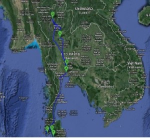 Luego, Bangkok (4 noches), tren (2 h) hasta Ayuthaya (1), tren (3 h) y guagua (1:30 h) hasta Sukothai. Salimos en guagua (5h) hasta Chiang Mai (4 noches). Desde aquí tomaremos un avión (2 h) con Air Asia, que nos llevará a las islas del sur, Phuket (3 noches), Islas Phi Phi (2 noches), Isla de Ko Lanta (2 noches), Krabi (4 noches). Para volver a Bangkokel penúltimo día, vía aérea. Aunque iremos improvisando sobre la marcha y por tanto el itinerario no está cerrado.
