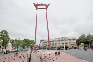 En el hotel Tara Place todo ok, nos dieron la habitación rápido, así que, ducha y a la calle. Tomamos un tuc-tuc, primera novatada, nos cobró 60 bath, por llevarnos 2 km, lo mejor es taxi con taxímetro, siempre es más barato. Nos dejó en el Wat Suthat o Templo del Columpio (20 bahts).