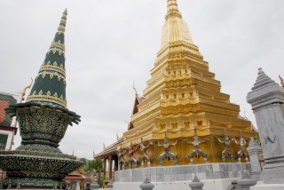 A continuación se asciende unas escalinatas al piso superior que te llevan directamente al Phra Si Rattana Chedi, que es donde se guarda un trozo del esternón de Buda. Rosi está custodiada por Apsonsi, criaturas mitológicas, mitad mujer, mitad león que decoran la terraza superior.