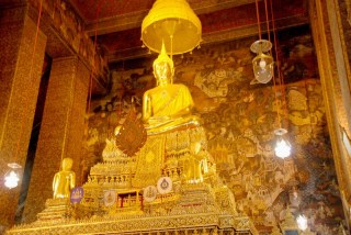 A continuación se pasa al bot principal una imagen de broce de Buda, este está rodeado por patio imágenes de buda. En la parte de delante se encuentra el wihan.