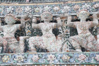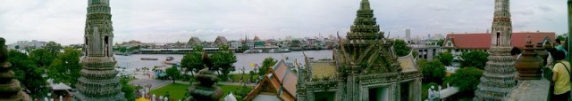 Las vistas desde la parte alta del Prang sobre la ciudad de Bangkok son grandiosas. Mide 114 m de alto. Está totalmente cubierto de fragmentos rotos de porcelana