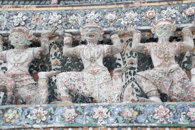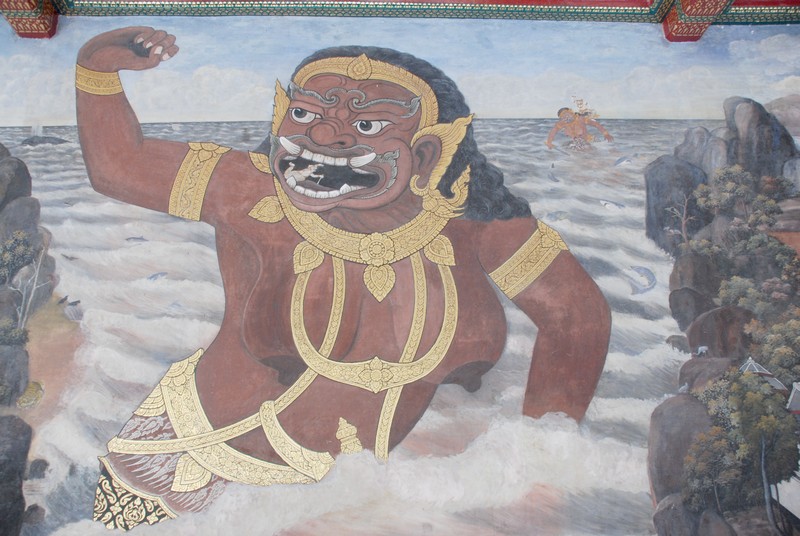 Al entrar el primero que ves es una galería, Ramakien que representan escenas de la leyenda del Ramayana adaptada aquí por los tailandeses y que recorre todo el recinto.