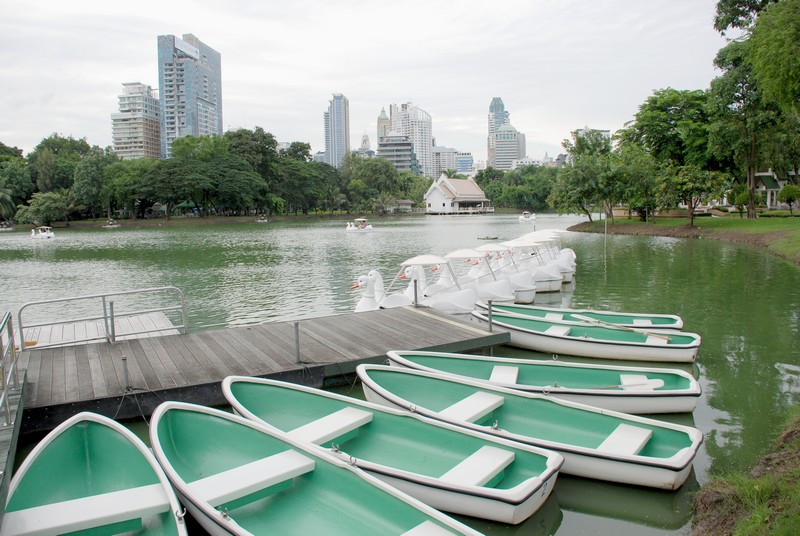 El parque Lumphini es una extensión arbolada muy vasta, donde destacan los lagos con barcas, fuentes, piscina, canchas de tenis y dependencia para practicar otros deportes, sala de musculación al aire libre. Sobre todo gente haciendo gimnasia al ritmo de la música, dirigidos por varios monitores (creemos que gratis, todo). Mucha, mucha gente haciendo footing