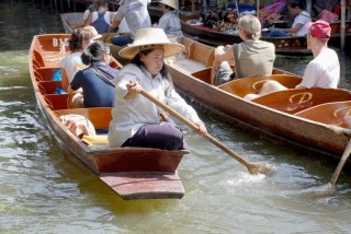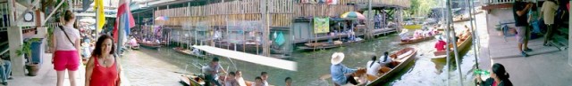 Hay varios puntos donde tomar por 150 bath una barca, ahora con un remero o dos depende de la longitud. Nosotros decidimos no hacer el recorrido de 30 min. Ya que pudimos comprobar que se forman unos atascos bestiales y realmente, pasear y ver lo puedes hacer perfectamente caminando.