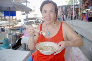 Pegados a la rivera del rio Phraya hay algunas pequeñas casas de comida, donde nosotros almorzamos. Fabulosa la comida de este puesto que ha pasado de madres a hijos por las fotos que tenían expuestas en sus paredes. Mención aparte son los zumos de piña, papaya, etc…