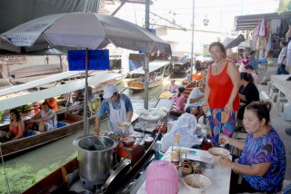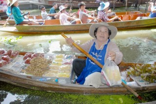 Realmente, el mercado es para guiris total, poca autenticidad tiene, la mayoría vende la misma mercancía en las tiendas de la orillas. Mientras que los vendedores de las barcas en el canal son de comida, fruta y alguna artesanía.