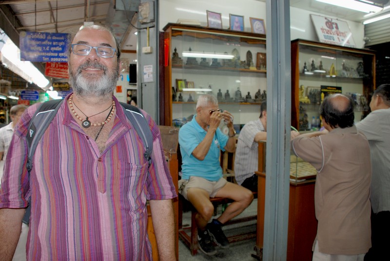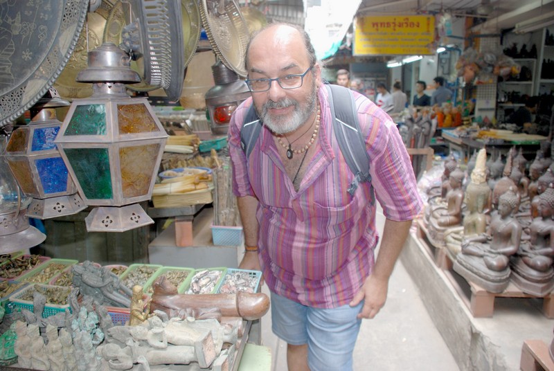 Nos acercamos al mercado de los amuletos, donde decenas de pequeñas tiendas, concentradas en pocos metros cuadrados, exponen sus amuletos u ofrendas para los templos o leen las manos. Parece más un rastro del coleccionista porque los compradores toman una lupa y se ponen a observar con una curiosidad desesperante el pequeño objeto que mantienen pegado a las narices.