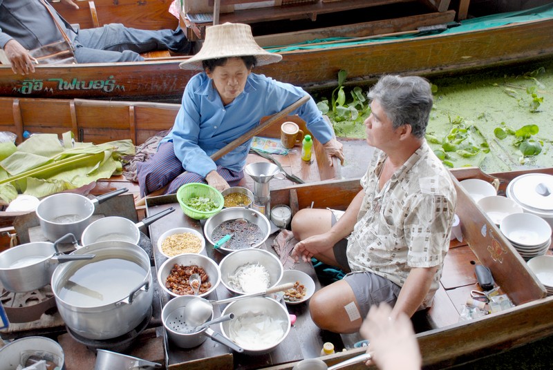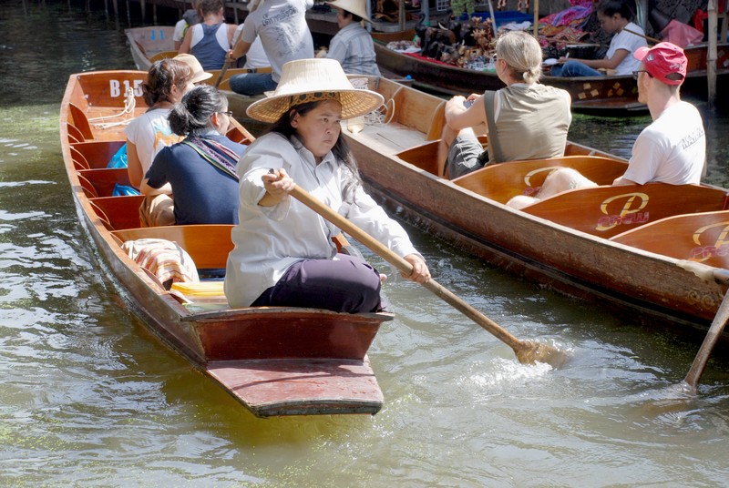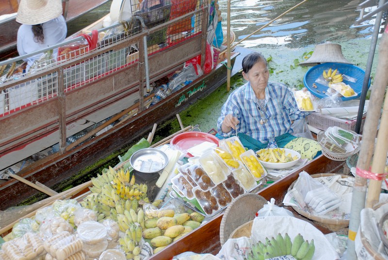 Realmente, el mercado es para guiris total, poca autenticidad tiene, la mayoría vende la misma mercancía en las tiendas de la orillas. Mientras que los vendedores de las barcas en el canal son de comida, fruta y alguna artesanía.