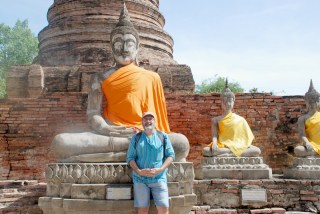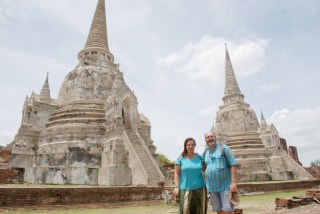 El guía de la agencia te informa de cada uno de los templos y luego te deja tiempo libre para hacer fotos, meditar, hacer ejercicios espirituales e incluso aguas menores. Este centro monumental, patrimonio de la Unesco está muy bien acondicionado. El conjunto del Wat Yai Chaya Mongkol, está compuesto por varios construcciones, como estos tres chedis, alineados.