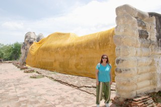Nos desplazamos después de almorzar a un nuevo templo, el Wat Lokayasutharam, aunque sólo quedaban los basamentos, destaca por su Buda reclinado, es el segundo más largo después del que vimos en Bangkok. Su cabeza descansa sobre cuatro capullos de flor de loto y está sostenida por la mano derecha, tiene unas dimensiones de 8 metros de alto y 37 metros de largo, construido en ladrillo y mortero.