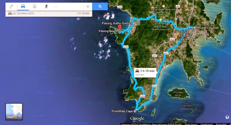 Las mejores playas (Hat en thai) de Phuket están en la zona oeste de la isla. Nosotros realizamos un recorrido circular partiendo de Patong, que se ha convertido en el principal punto turístico, debido a su animadísima vida nocturna. La playa se abre a una bahía en forma de media luna y dispone de todos los servicios que un turista desea. Los mojitos son espectaculares doy fé.