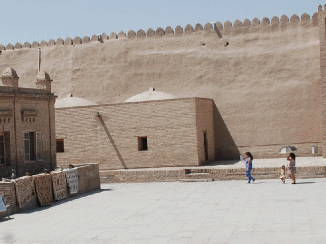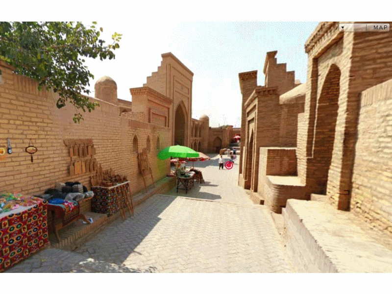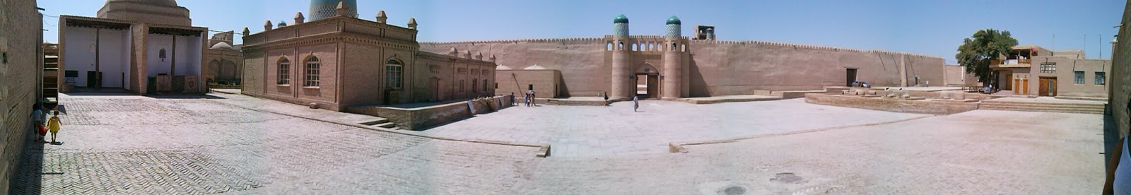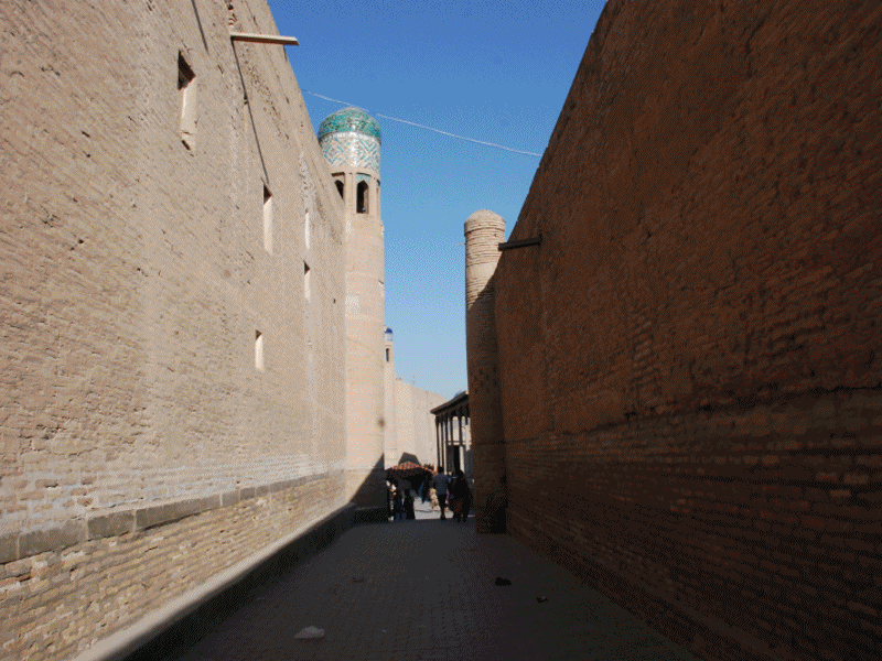 Nosotros accedimos al interior de la ciudad vieja por la Ota Darvoza (Puerta Oeste). Casi todos los monumentos se encuentran entre esta puerta y la Palvan Darvoza (Puerta Este) unidas por la c/ Polvan Qori. Aunque lo mejor es perderse por el intrincado vericueto de sus calles, típicas de las ciudades islámicas.