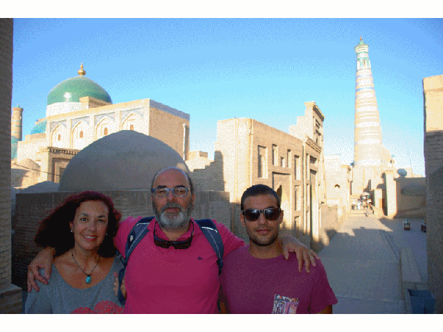 Nuestra estancia en este oasis de hermosura quedará para siempre reflejada en nuestra retina. Khiva, Jiva, Xiva…la de los cien nombre y mil atardeceres, la polvorienta, la regada por las mieles de Alá. Siempre poderosa y al mismo tiempo sutil y vaporosa, como un espejismo del desierto. Nos abrió sus puertas sedientos de sus secretos y ahora nos deja partir ahítos de su belleza…hasta siempre Khiva la hermosa…