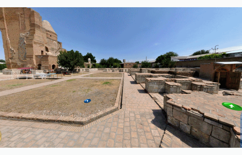 A la izquierda del patio, se encuentran los dos mausoleos, el primero corresponde a Sheyj Shamsiddin Kulol, tutor espiritual de Tamerlán, es el edificio más antiguo, data de 1370 y contiene en el centro un sarcófago blanco. Justamente al lado, el mausoleo Amir Taragay, en el que hay cuatro sarcófagos, siendo el mayor de ellos el correspondiente al padre de Tamerlán.