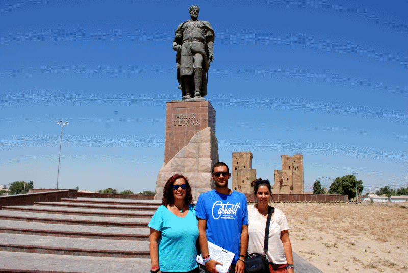 Frente al palacio se abre una gran la plaza, anteriormente estaba rodeada por jardines y fuentes, pero en estas fechas solo hay tierra y polvo. Aquí se erige la estatua de Timur o Tamberlán, a la cual los uzbecos suelen dar tres vueltas.