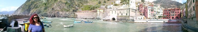 A medio día partimos hacia Manarola,donde queríamos almorzar. El pueblo, se sitúa sobre un escarpado promontorio de roca, con el puerto encerrado entre dos espigones rocosos. Como todos se organiza alrededor del curso, ahora cubierto del arroyo Groppo. La estación de tren queda a unos 100 mts del pueblo y se ha de atravesar un túnel.