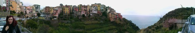 Nosotros, rápidamente nos dirigimos al autobús que nos dejó en la plaza central de Corniglia, llamada Ciapara, la carretera asfaltada continua y es adecuado caminar por ella unos 100 mts para disfrutar de las mejores vistas del pueblo.