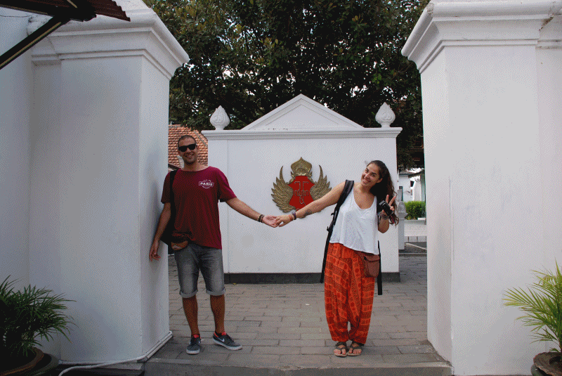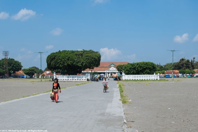 Al final de la calle se llega a una gran explanada con dos waringin, higueras sagradas de Bengala y la entrada principal al Kraton o palacio real, que está cerrada, se accede por una lateral. El palacio fue construido por el príncipe Pangeran Mangkubumi en 1755. El recinto está rodeado por un muro rectangular con varias puertas de acceso. Es una ciudad dentro de la ciudad, viven unas 25.000 personas con sus propios mercados, tiendas, artesanos, escuelas y mezquitas. Unos mil residentes trabajan para el sultán. Aquí se encontraba nuestro hotel, Griya Wijilan.