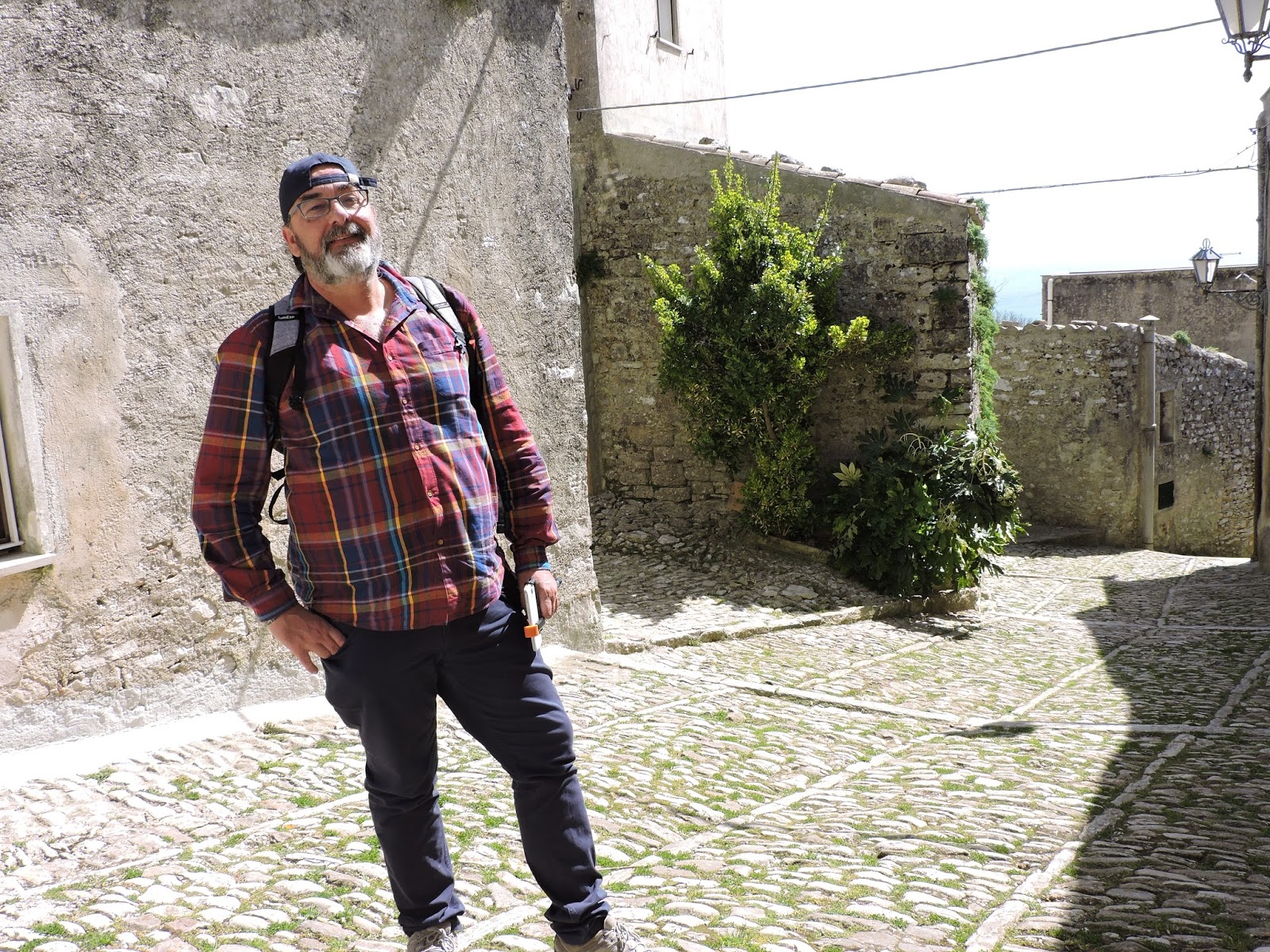Continuamos ahora hacia la ciudad medieval de Érice,unos 40 minutos en coche, aunque la última parte la carretera es una sucesión de curvas y subidas empinadas, ya que, se encuentra en lo alto del Monte San Giuliano. A Érice también se puede llegar desde la población costera de Trapani en funicular. Pero en esta época estaba cerrado. Dejamos el coche en el parking de la Chiesa Madre, pasada la puerta Trapani, una de las cuatro (Spada y Cármine,). También llamada de Santa María della Asunta, del s. XIV, levantada bajo el reinado de Federico de Aragón. Su particular campanario, separado de la iglesia es en realidad una torre de vigilancia aragonesa de 1315. El maravilloso pórtico de la iglesia pese a ser gótico, algo inusual en la barroca Sicilia, data del 1426.