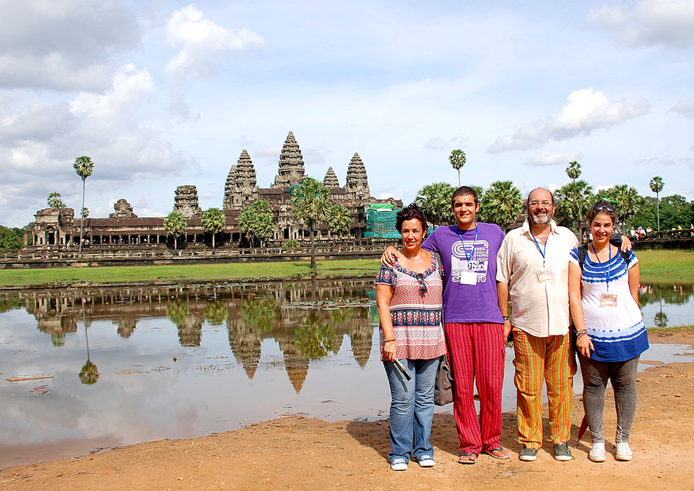 A medio camino entre India y China, entre el hinduismo y el budismo, entre el arte y la religión, su historia está marcada por la violencia del régimen comunista de los Jemeres Rojos, dirigidos por Pol Pot y por la invasión de Vietnam en 1978. Sin embargo, esto no ha hecho que su población haya perdido su sonrisa. Nada te prepara para ver un amanecer en uno de los templos de Camboya. Ya sea por los relatos del explorador francés Henri Mouhot en 1860 o por la más reciente película Tom Raider de Angelina Jolie en el papel de Lara Croft. La necesidad de ver con nuestro propios ojos lo que era ficción o realidad de las imágenes que nos describían hizo que la familia decidiera aprovechar el Viaje a Vietnam en Agosto de 2010 y visitar este maravilloso país.