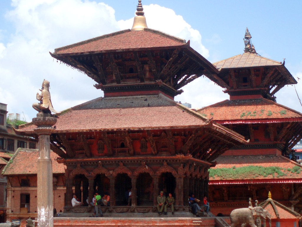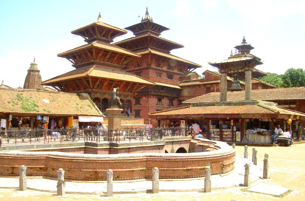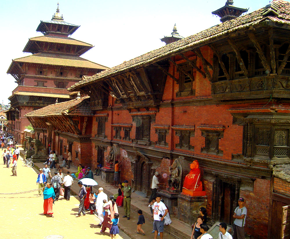 A pesar de dejarnos en el corazón de la ciudad, en su monumento más importante, la Plaza Durbar, también catalogada por la Unesco como Patrimonio de la Humanidad desde 1979, pudimos notar mayor tranquilidad, menos construcciones invadidas por tiendas, carteles o tendido eléctrico. La ciudad está adornada con surtidores de piedra, jaladroni (depósitos de agua), puertas de madera o piedra bellamente talladas, templos budistas e hinduistas, aunque predominan más éstos últimos. Además está prohibida la circulación de vehículos, lo cual ayuda más al recogimiento, al sosiego y la tranquilidad, para los fervientes fieles que recorren los templos realizando ofrendas, rezando o simplemente sentados a la sombra.