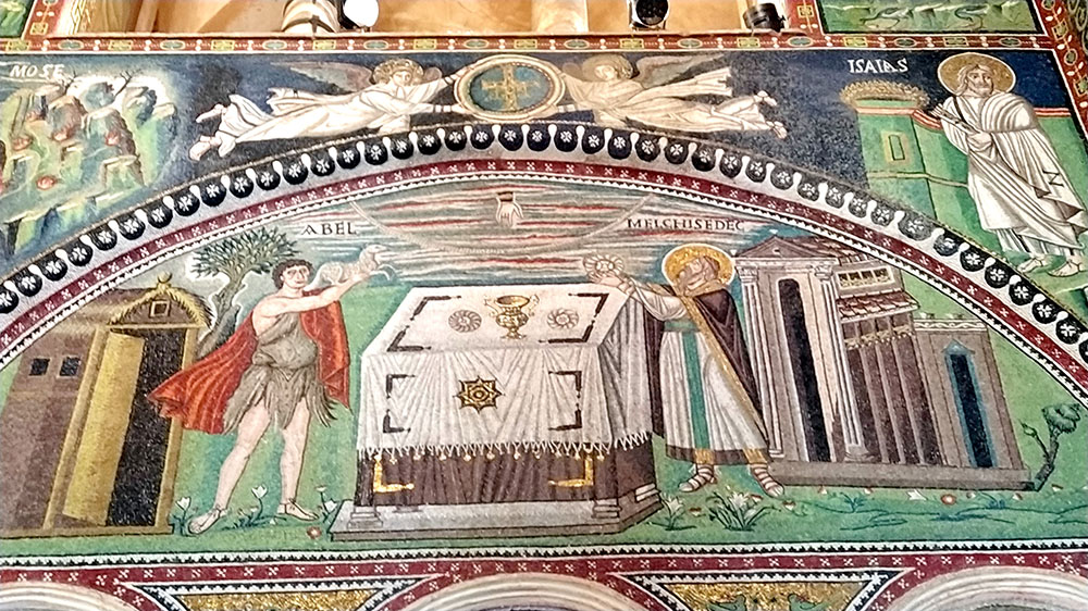 Si bien, la decoración de la iglesia está parcialmente dañada, la parte del ábside y del presbiterio se conserva en su estado original. Primero, un arco a la entrada de la bóveda donde se aprecia, en el centro, la imagen de Cristo y alrededor en círculos los 12 apóstoles y los santos Gervasio y Protasio, hijos de San Vital de Milán. Al fondo de la bóveda, en el techo, hay un mosaico dorado con la imagen de un Cristo de aspecto helenístico sentado sobre el globo terráqueo; a su derecha destaca la imagen de San Vital que está recibiendo una corona y a su izquierda el arzobispo Ecclesio. Sin lugar a dudas en uno de esos monumentos que te dejan el cuello dolorido, el alma en un puño y la respiración contenida, hasta que con fuerza expulsas el aire y te dedicas a recorrer con la mirada tanta exquisitez, y se te agolpan en la mente infinidad de preguntas de lo que estás disfrutando en ese momento.