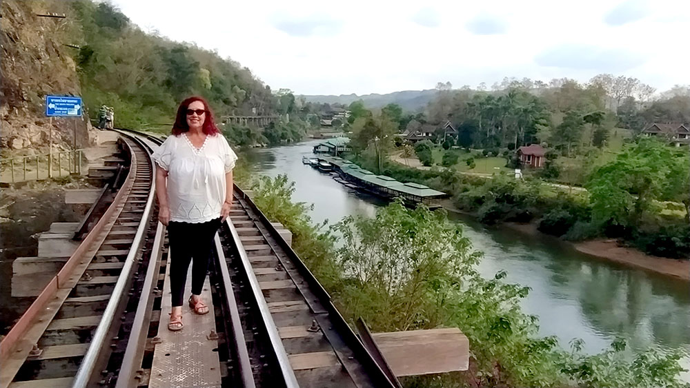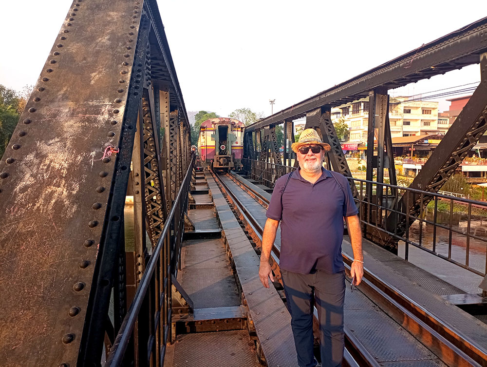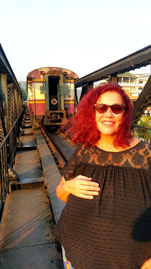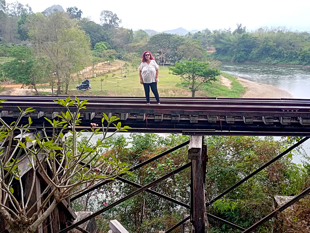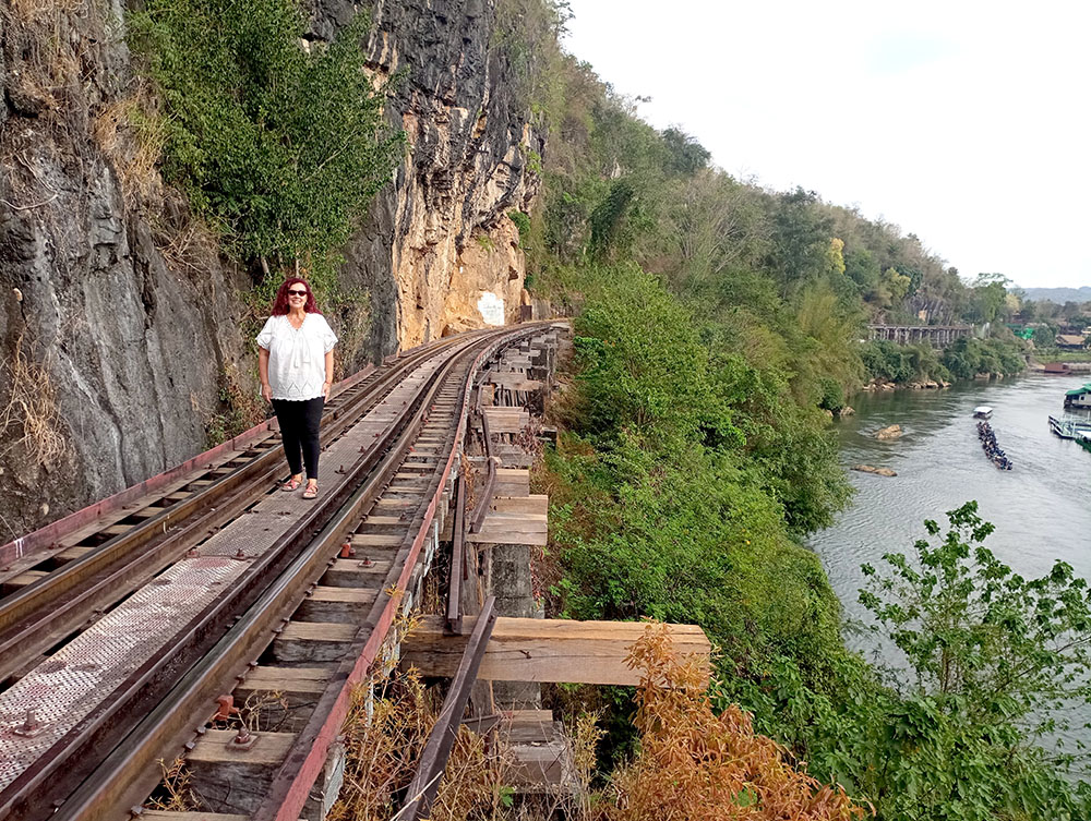 Cruzar el puente a pie es una sensación rara, si se conoce la historia, muchos vienen aquí a contemplar la puesta de sol o atraídos por las imágenes de los instagramers o influencers de turno, sin entender la historia de la barbarie cometida, banalizan su simbología. Pero mayor es la sensación, si de repente oyes sonar la bocina del tren y lo ves acercándose, lentamente, pero de manera inexorable y corres a situarte en uno de los apartaderos que hay en el puente, para verlo pasar a pocos centímetros, muchos pasajeros son turistas que recorren la línea hasta el pueblo de Nam Tok como siguiendo un ritual