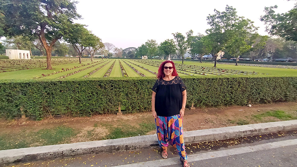 Justo enfrente del museo se extiende el Kanchanaburi War Cemetery, también conocido como Don Rak . Una explanada de césped muy bien cuidado rodeado por un seto y abierto en una puerta de tres arcos se alinean unas 6982 lápidas. En en su mayoría, se enterró a prisioneros del bando aliado tras recuperar sus restos de las fosas comunes a lo largo del trayecto del tren, la mitad de los soldados presos eran británicos, y el resto australianos y holandeses.