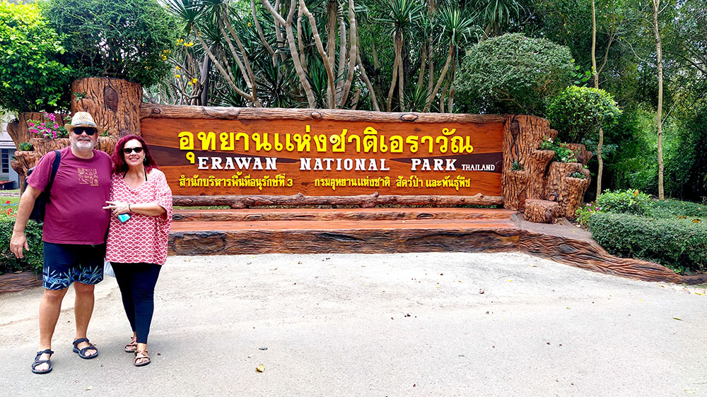 A 75 kilómetros de Kanchanaburi se encuentra el impresionante Parque Nacional de Erawan, en la cordillera de Tenasserim Hills, se extiende desde el río Huai Mong Lai hacia una montaña de 2100 metros de altura. La cascada tiene 1500 metros de largo y siete niveles. Fundado en 1975 cubre un área de 550 km². La principal atracción del parque son las Cataratas Erawan de 7 niveles con estanques de color verde esmeralda donde se puede nadar. También hay varias cuevas impresionantes. El parque y las cataratas llevan el nombre del elefante blanco de tres cabezas de la mitología hindú. Se dice que el nivel superior de las cataratas se asemeja a una cabeza de elefante.
