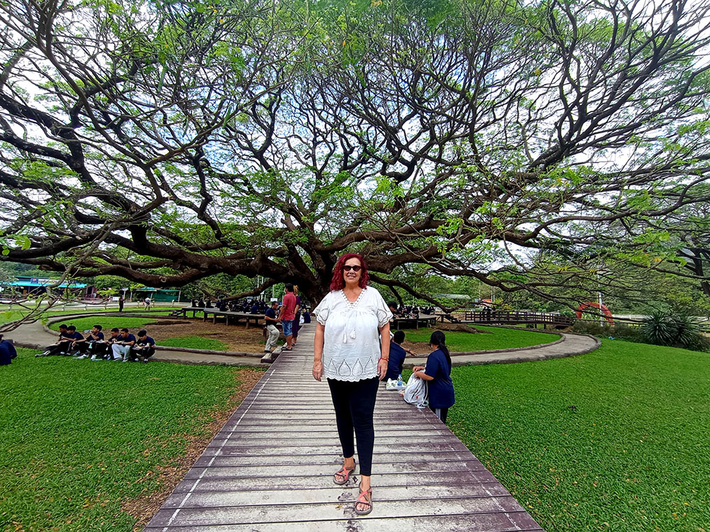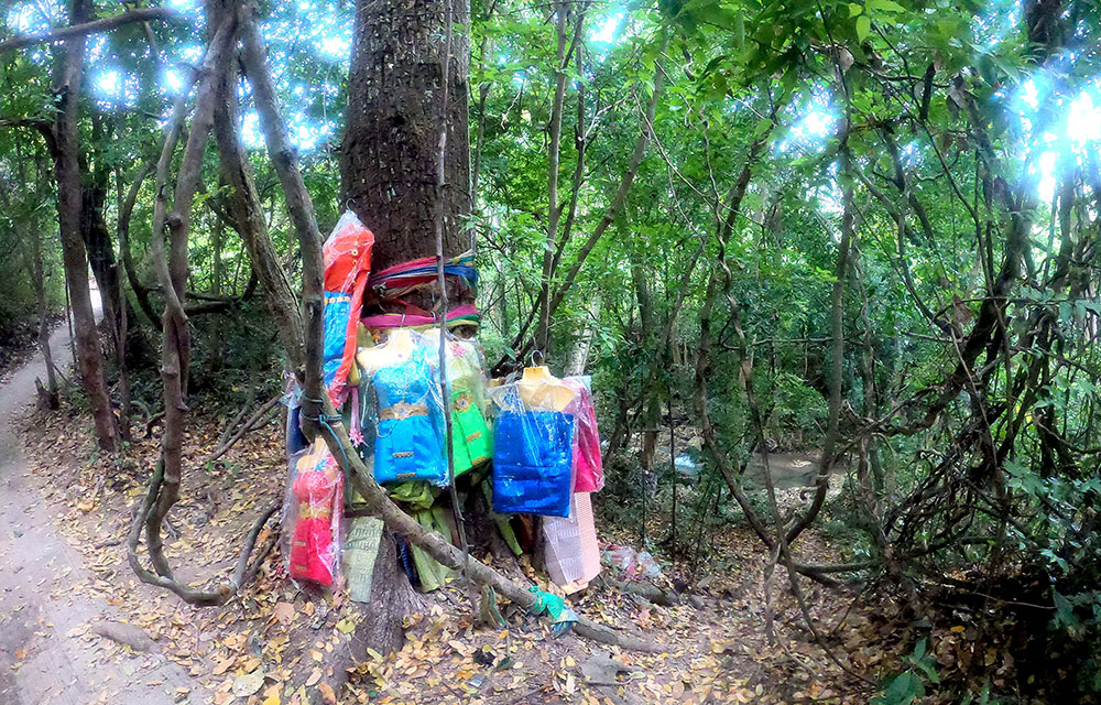Por el camino nos encontramos con un árbol sagrado donde hay varios percheros y maniquíes con vestidos con ropa tradicional tailandesa. Los han colocado allí para aplacar a los fantasmas y espíritus que los tailandeses creen que habitan en el bosque.