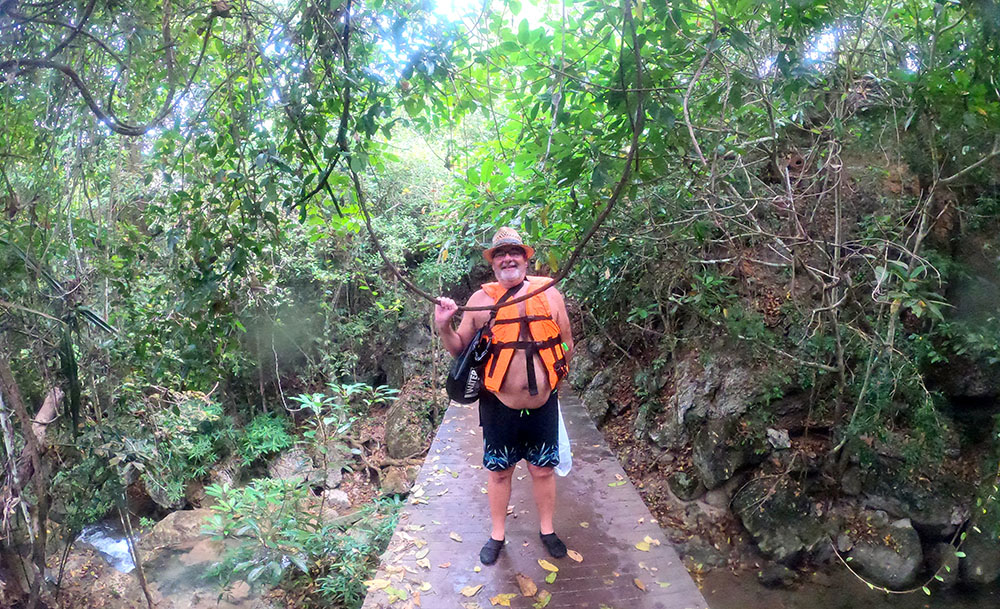 La siguiente cascada se encuentra a 1120 m, y para llegar a ella, se ha de subir algunos tramos empinados de escaleras, a través del bosque y cruzar pequeños puentes sobre los torrentes que van erosionando el terreno de caliza. El calor sofocante, debido a la humedad del ambiente, y los 34 ºC hace que este tramo te lo tomes con mucha calma, ya que puede ser bastante agotador.