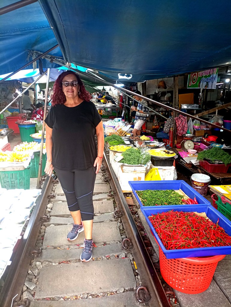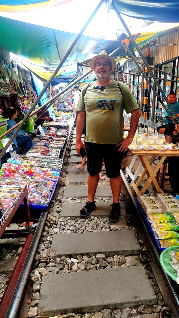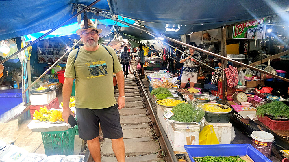 Mercados en Tailandia hay millones y tal vez nos quedaríamos cortos. Me habrán leído muchas veces, si siguen el blog, que los mercados son el mejor lugar donde conocer la esencia de un país, descubrir sus costumbres, su gastronomía por supuesto, pero también el trato cercano de sus gentes. Hace unos cuantos años, una imagen, se nos quedo grabada en la retina la primera vez que la vimos. Un tren se acercaba a marcha lenta y atravesaba un mercado, mientras los vendedores recogían las mercancías que tenían expuestas en medio de las vías. Desde entonces sabíamos que en algún momento de nuestras vidas lo visitaríamos.