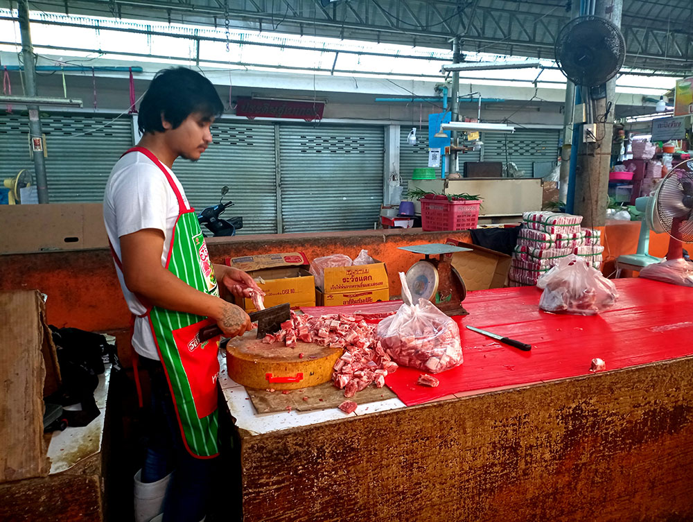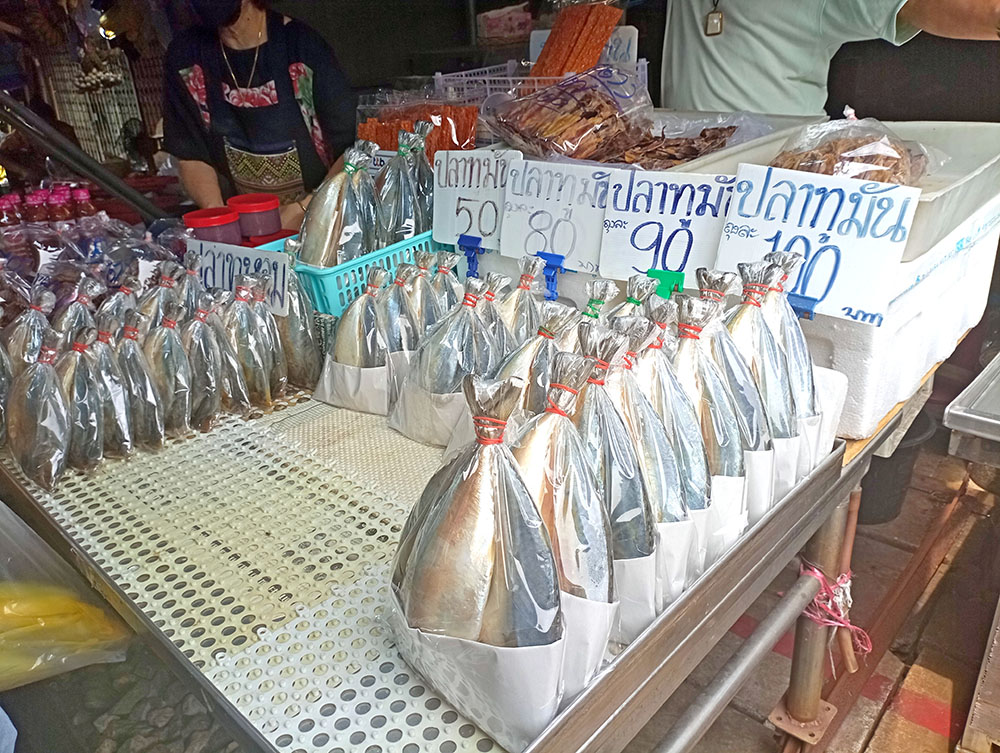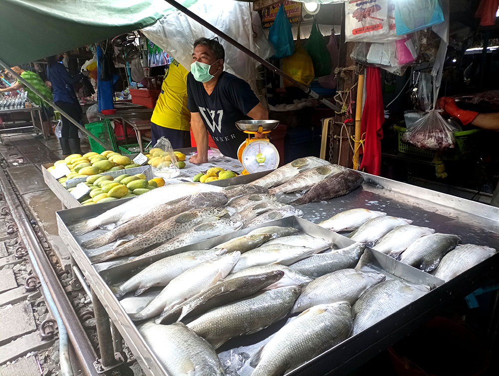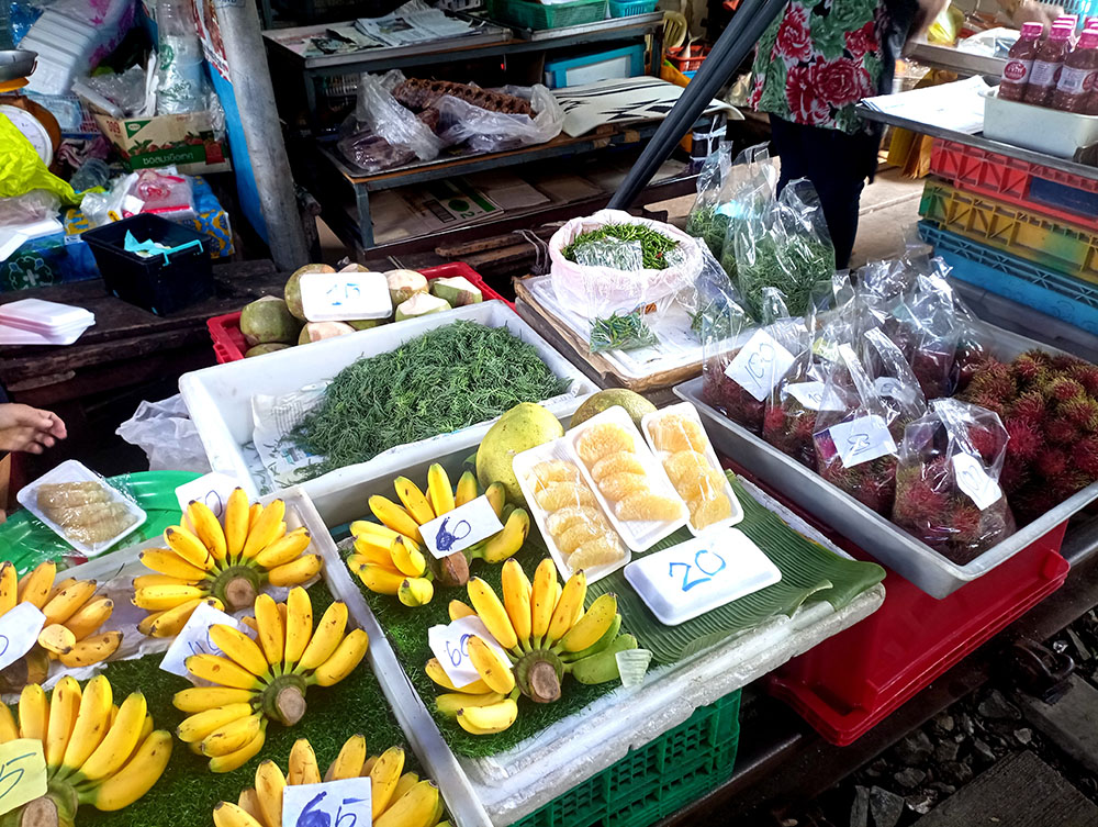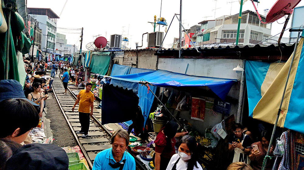 Obviamente el mercado ocupa más espacio que la vías del tren, una manzana entre las calles Pasitpattana Rd, Peth Samut y Kasemsukut Rd, cubierto y con pasillos donde encontramos puestos de pescado, carne, frutas y ropa bien delimitadas entre otras mercancías. Un magnífico lugar donde también probar la cocina de la zona, con restaurantes y chiringuitos callejeros para todos los gustos y bolsillos.