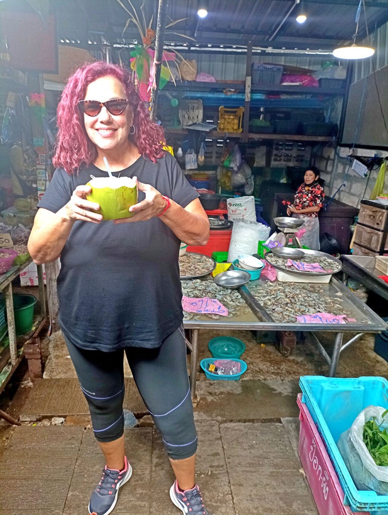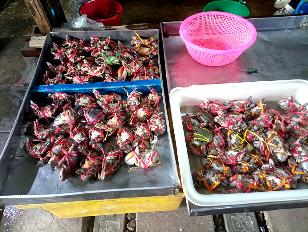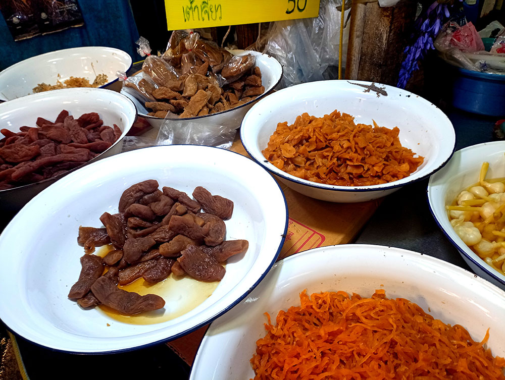 Los olores que inundan el ambiente son brutales. Te quedas embobado viendo como cocinan platos exóticos o como mezclan las diferentes verduras haciéndolas saltar de forma acrobática en sus woks. La variedad de comida es increíble; tienen vieira asada, pescado, gambas a la parrilla, cangrejos al vapor, ostra o la famosa sopa Tom Yum Kung. El mercado ofrece una increíble variedad de dulces . Hay chips de plátano, paletas y frutas secas.
