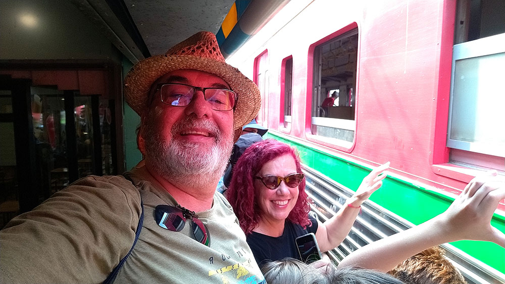 El tren se mueve muy lentamente al pasar por el mercado a pocos centímetros de la gente que se agolpa a sus lados, incluso algún temerario se pone en medio de las vías para un selfie que puede ser mortal. El maquinista saca medio cuerpo por fuera de la ventanilla y choca las manos de los turistas. En los vagones suelen ir también algunos turistas que hacen fotos y saludan.