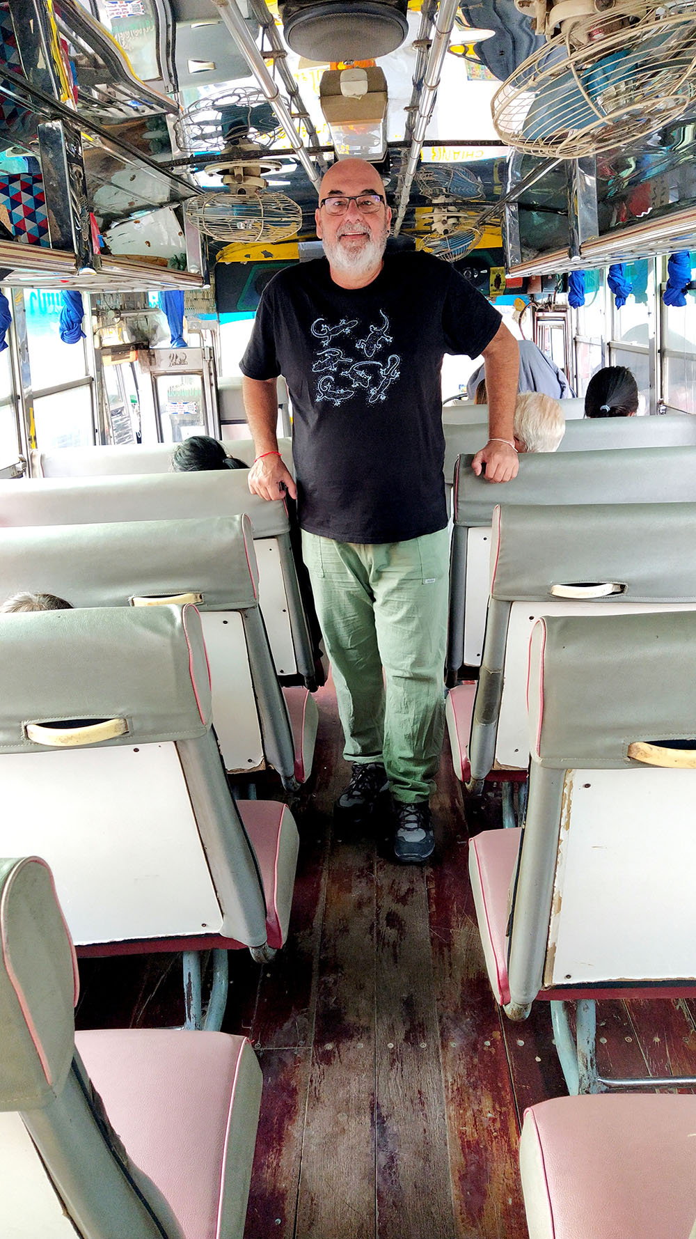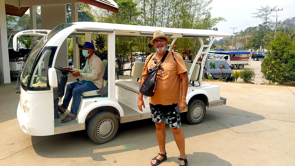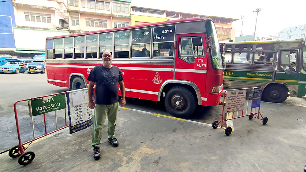 Nuestra aventura comenzó en Tailandia en la parada de guaguas de Chiang Rai, Bus Terminal 1, en Phaholyothin Road, cerca del Night Market. Las guaguas suelen salir de los andenes 6 o 9 y te llevan hasta el Puente de la Amistad en Chiang Khong para el cruce fronterizo a Laos (Houay Xai). La guagua (35 bath2023) te deja después de 2 h de trayecto en un cruce a 5 km Chiang Khong, allí se coge un tuk-tuk (50 bath2023) para recorrer los últimos kilómetros hasta la frontera con Tailandia. En el puesto de emigración que hay en la parte tailandesa y una vez sellado el pasaporte (no olvidar las tarjetas de entrada y salida del país) se toma obligatoriamente un transfer (guagua) (30 bath2023) para cruzar el Puente de la Amistad que conecta la frontera de Tailandia y Laos.