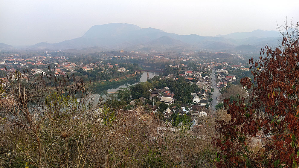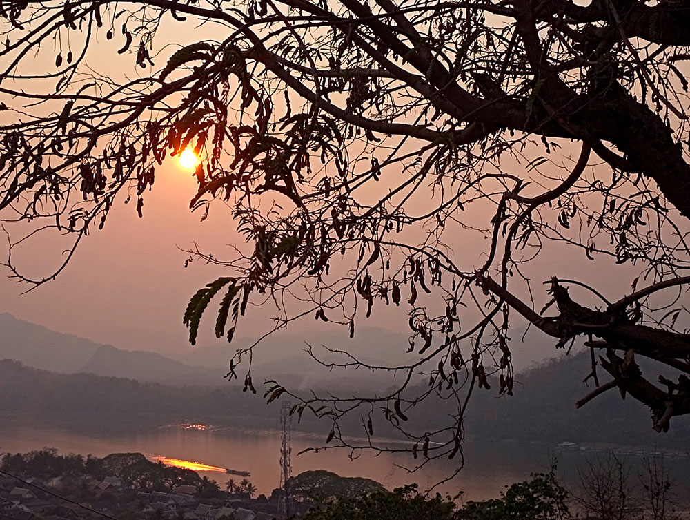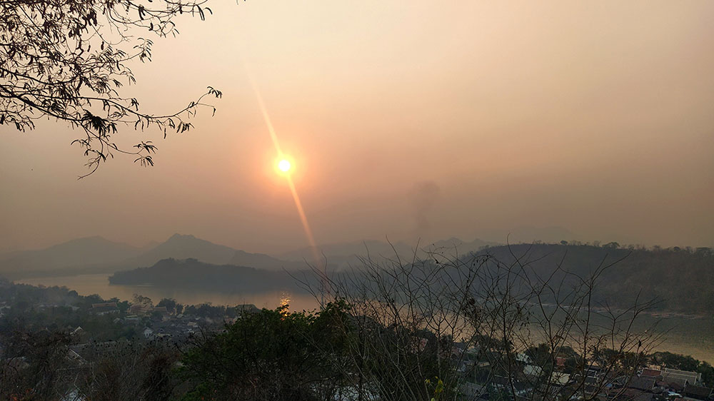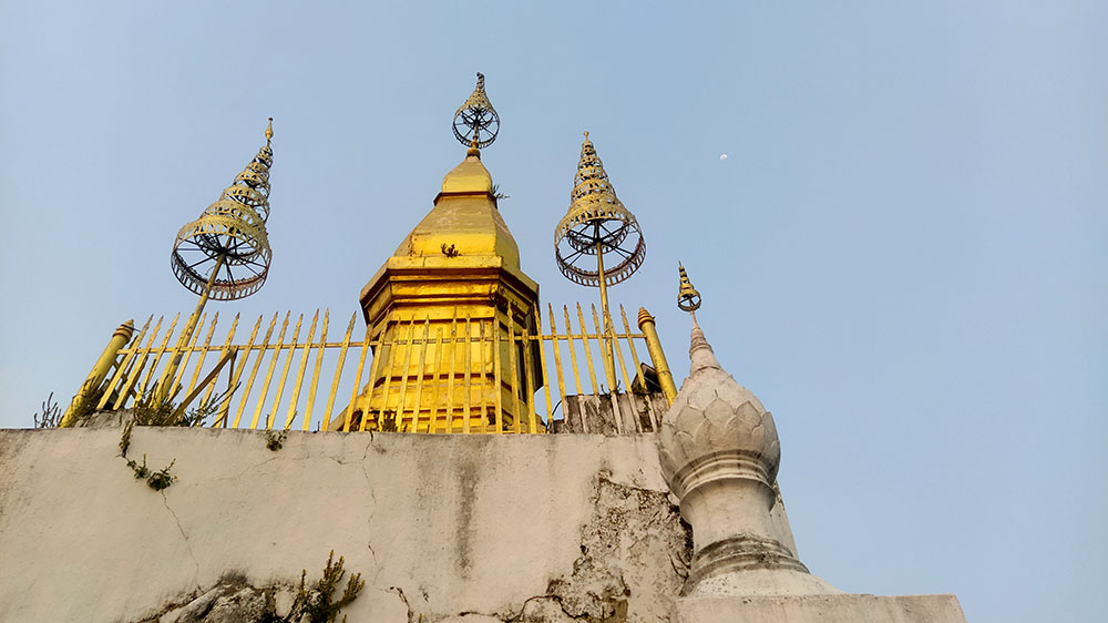 Contemplar el atardecer desde aquí, es una de esas imágenes que quedan grabadas en tu retina y el mejor de los souvenirs que puedes llevarte contigo. Se pueden divisar todos los rincones de la ciudad, así como los distintos colores de rojo con los que se tiñen los ríos Mekong y Nam Kham.