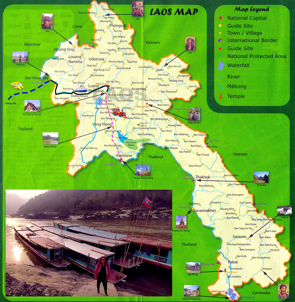 De las tres antiguas colonias francesas de Indochina, Laos es la menos desarrollada y la más enigmática de todas. Logró su independencia en 1953, es un país eminentemente agrícola, mayormente de subsistencia. La mayoría de la población vive en los valles del río Mekong y sus afluentes, donde se puede cultivar arroz. Sin salida al mar, limita con Myanmar (Birmania) y China al noroeste, Vietnam al este, Camboya al sureste, y Tailandia al oeste y suroeste. La moneda local es el Kip (1€ = 22.026,61 kip 2023).