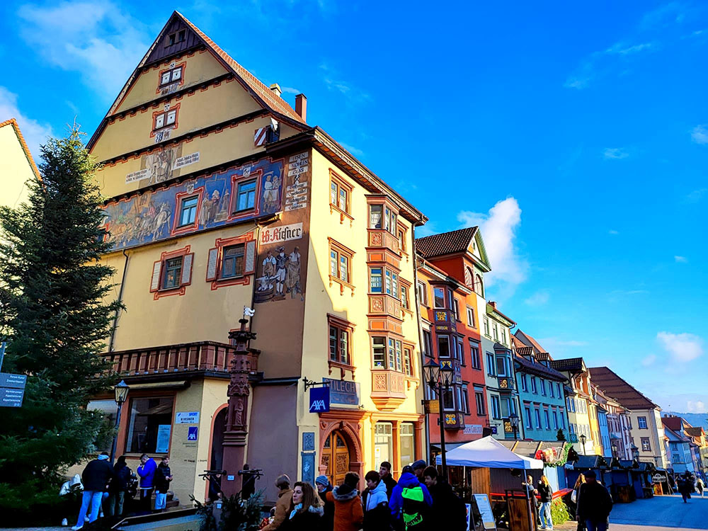 Saliendo de la plaza del mercado vemos la posada Adler, hoy un hotel boutique, que se considera la casa con entramado de madera más bella de la ciudad. Cruzamos el Stadtbrücke, el puente que salva el río Schiltach y es desde donde se tienen las mejores vistas de la colina Schlossberg, donde apenas quedan ruinas del castillo. Terminamos el recorrido en la Evangelische Stadtkirche, la iglesia protestante construida entre 1839 y 1843 en piedra arenisca.