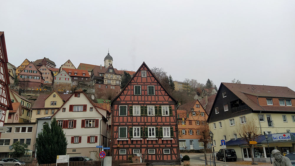 Continuamos hacia el norte por el valle escarchado de Nagold, llegando finalmente a la ciudad de Calw, de gran importancia durante el siglo XVII, gracias a su industria textil, de madera y sal. Pero su relevancia actual es por ser la ciudad natal del escritor Hermann Hesse, Premio Nobel de Literatura en el año 1946.