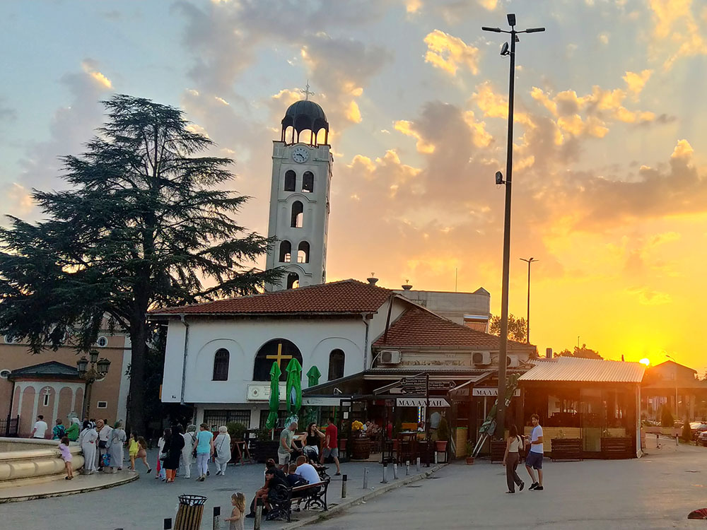 Algo más alejada, en el Boulevard Portizanski Odredi, visitamos la Iglesia Ortodoxa de San Clemente de Ohrid, la más grande de todo el país. Diseñada por Slavko Brezoski e inaugurada en 1990. En su interior destacan sus pinturas y murales, además del enorme iconostasio cubierto de pan de oro.